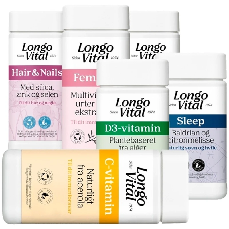 Vælg lige de varianter af vitaminer som passer til dig, og få dem til en skarp pris! Her kan du frit vælge mellem alle varianter – prøv f.eks. nogle af bestsellerne Collagen, Hair & Nails eller Feminin.