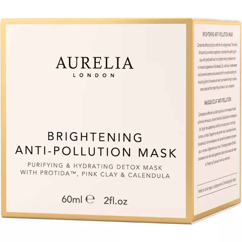 Aurelia Brightening Anti-Pollution Mask er en rig maske, som giver dig en ren og frisk hud. Den booster hudens cellefornyelse, hvilket modvirker grå og trist hud, samtidig med at den virker lysnende. Den indeholder lyserødt ler, som har en rensende effekt, og den er derfor god at bruge på områder med urene porer. Den er derudover med havre-ekstrakt, som virker fugtgivende og beroligende, mens arnica virker opstrammende. Ingredienser som kamille, morgenfrue og mjødurt hjælper med at styrke hudens barriere, og gør samtidig huden mere smidig. Masken har en lækker og beroligende duft af blandt andet jasmin, tuberose og mandarin, og den giver en skøn følelse af velbehag og ro. Forkæl dig selv og ikke mindst din hud med Aurelia Brightening Anti-Pollution Mask.