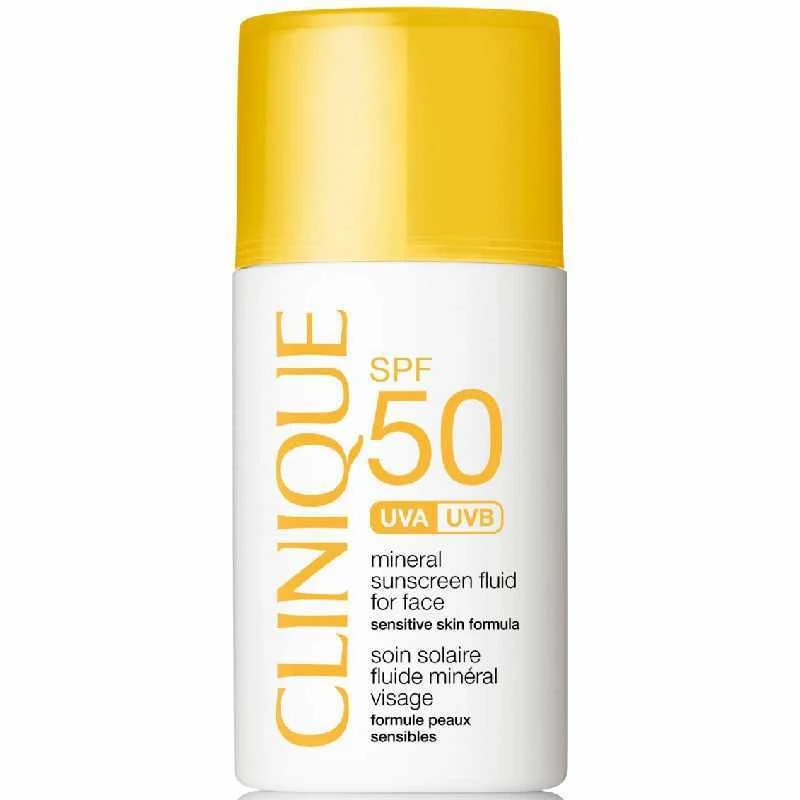Clinique Sun SPF 50 Mineral Sunscreen Fluid For Face er en ultra-let, nærmest usynlig 100 % mineralsk solfilter til ansigtet. Utrolig behagelig selv for sensitiv hud. Mild nok til også, at kunne bruges rundt om øjnene. En gennemsigtig afskærmende teknologi lægger sig som et beskyttende, nærmest usynlig slør henover huden uanset hudtone. Denne sol lotion til ansigtet er med SPF 50, er oliefri, allergitestet og parfumefri.