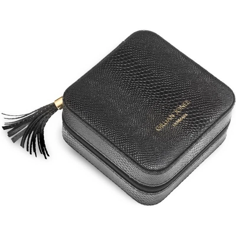 Gillian Jones Jewelry Box Travel – Black er et super fint lille smykkeskrin, som gør det nemt at holde styr på alle dine yndlings smykker eller mindre genstande. Dette fine smykkeskrin består af ét stort rum, som er delt op i fire små rum, hvor der i det ene rum er små “folder”, som er perfekt til ringe og øreringe.