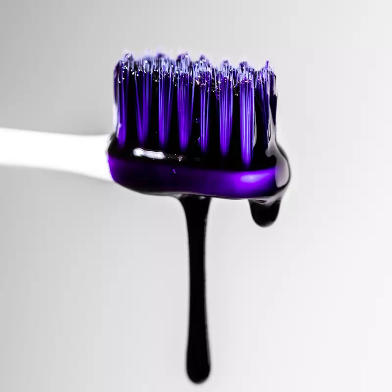 På et farvehjul er lilla direkte modsætning til gul, hvilket gør dem til komplementærfarver. Derfor er dette serum tilsat to vandopløselige farvestoffer, som giver en dyb, violet tone, der neutraliserer og skjuler gule undertoner, når den påføres tænderne, og resulterer i en synligt lysere, hvid nuance efter kun 2 minutters brug.