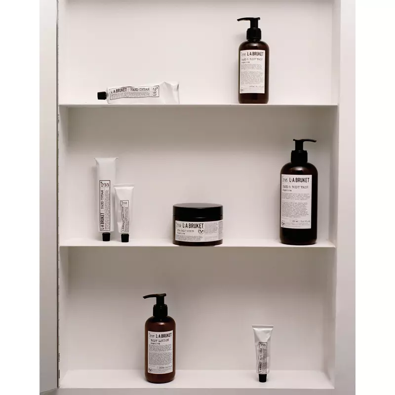 L:A Bruket 286 Hand & Body Wash – Angelica er tilsat æteriske lavendelolie og angelikaekstrakt, som virker beroligende og udrensende på både krop og sind, samtidig med at huden forkæles med dens friske, grønne duft.