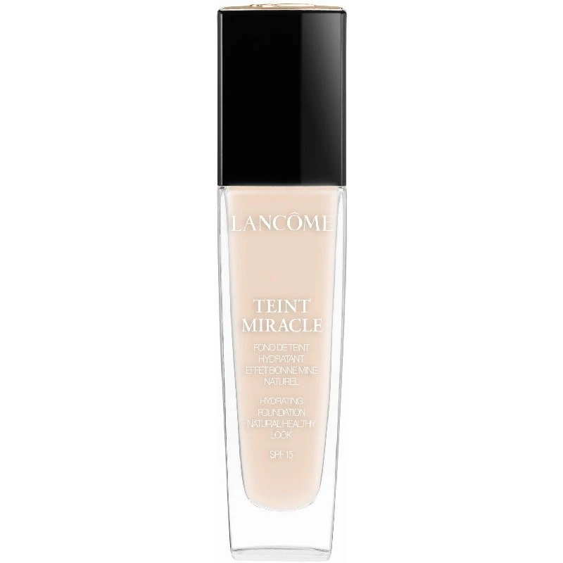 Lancôme Teint Miracle Foundation er en flydende lyserosa foundation, der giver et naturligt resultat. Den indeholder teknologien aurainside, der skaber et naturligt lys af pigmenter, der får foundationen til at reflektere i lyset. Den skaber en ensartet og fejlfri hud, med masser af udstråling. Ydermere giver den samtidig masser af fugt til huden, og med indhold af rosenekstrakt, lindrer den huden, hvorved den også er velegnet følsom og sart hud. Lancôme Teint Miracle Foundation indeholder SPF 15. Let til medium dækkeevne.