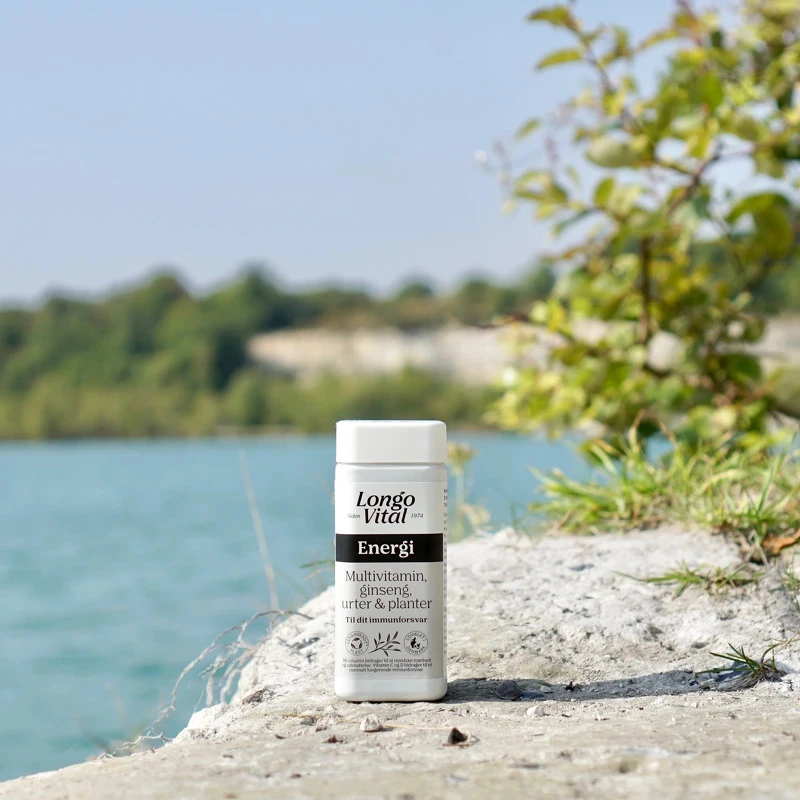 LongoVital Energy er et kosttilskud med vitaminer, Ginseng, urter og planter. LongoVital Energy indeholder bl.a. vitamin B6, Riboflavin, Niacin og Pantothensyre, der bidrager til at mindske træthed og udmattelse. Ligeledes bidrager vitamin A B6, C og D til et normalt fungerende immunforsvar. Indeholder også Ginseng (Panax ginseng C. A. Meyer), der er blandt de ældste og mest traditionsrige planter i Østasien.