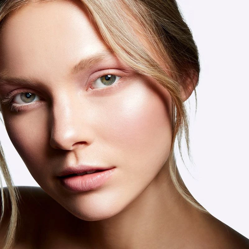 - Pro tip: Brug en større rougebørste til at påføre highlighteren på hele kinden og over øjenbrynsbenet for at give huden en sund glød, uden at den ligner en highlighter