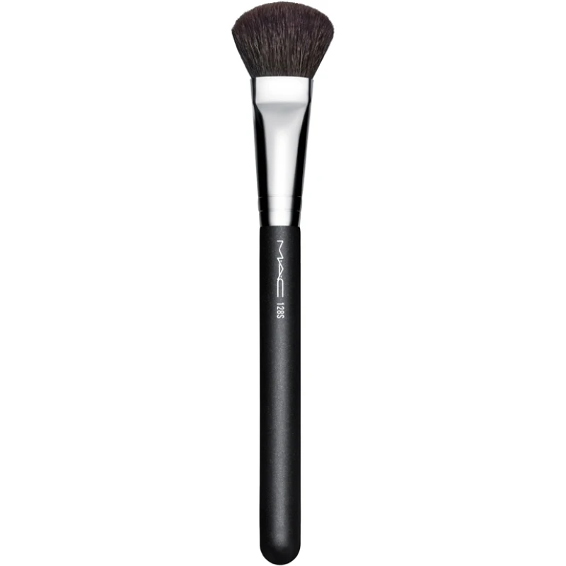 MAC Split Fibre Cheek Brush – 128S er en professionel ‘duopensel’ med korte tætsiddende hår i en let rundet form, der gør penslen ideel til påføring og udtoning af blush. Denne fantastiske pensel består af to forskellige sider, hvoraf den ene side giver et blødt og naturligt look, mens den anden side giver en mere skinnende og strålende hud.