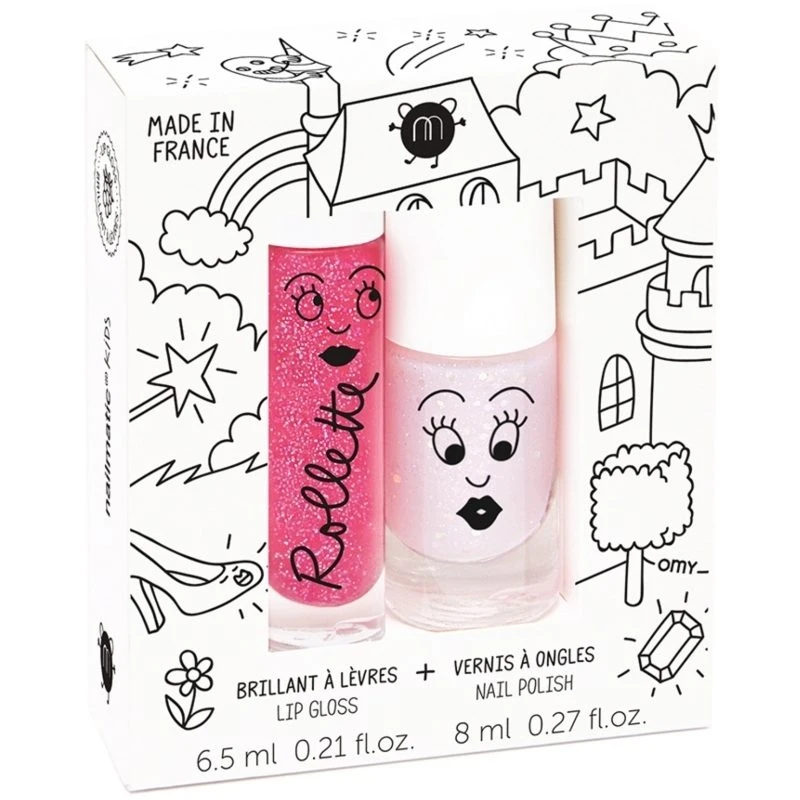 Nailmatic Kids Lip Gloss And Nail Polish Set – Fairytales er et fantastisk sæt til dit barn, der indeholder en vandbaseret neglelak, der går af med vand og sæbe, samt en naturlig ligloss der giver smukke og skinnende resultater. Kan dit barn godt lide at pynte sig, så er dette det helt rette sæt, da det er særligt udviklet til børn, og du kan med god samvittighed lade dit barn gå på opdagelse i den verden, da ingen af produkterne indeholder skadelige ingredienser.
