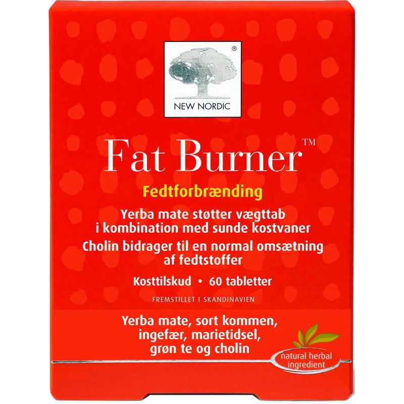 New Nordic Fat Burner 60 Pieces er en avanceret urtetablet baseret på velafprøvede ingredienser. Fat Burner er baseret på yerba mata kombineret med sort kommen, ingefær, grøn te og marietidsel, kombineret med næringsstoffet cholin. Cholin bidrager til en normal omsætning af fedtstoffer og yerba mate støtter vægtkontrol i kombination med sunde kostvaner.