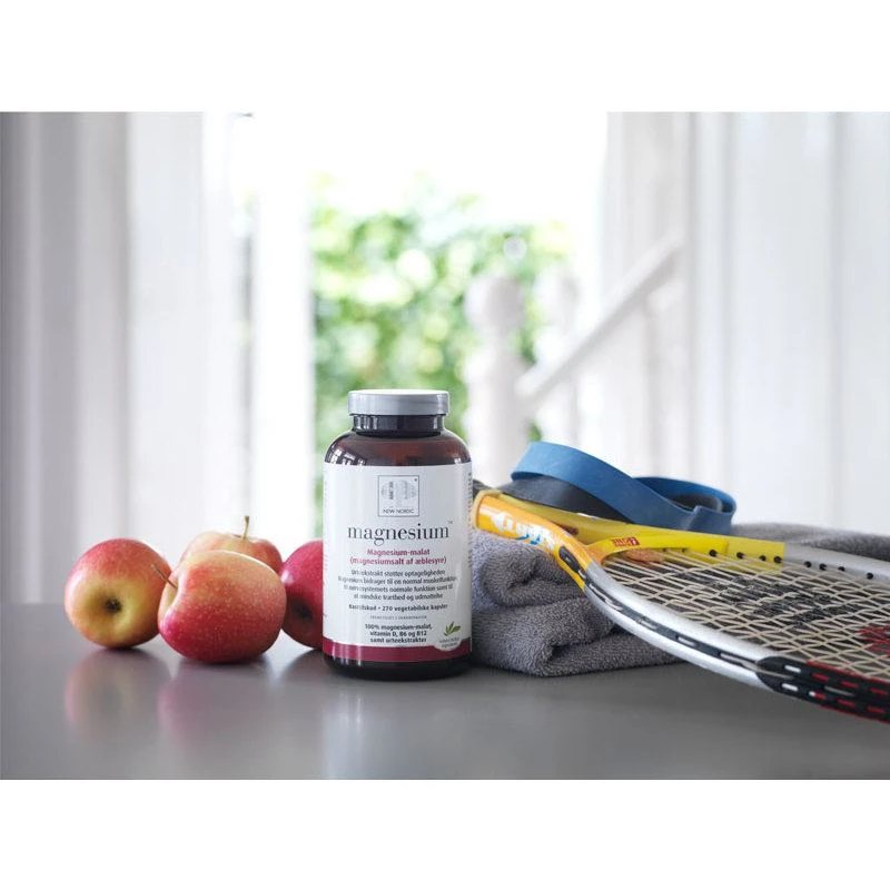 New Nordic Magnesium Malate 270 Pieces er et kosttilkud til voksne. Magnesiummalat er en frugtsyre – magnesiumsalt af æblesyre, dvs. en organisk bundet magnesiumkilde. Magnesium reducerer træthed og udmattelse samt bidrager til opretholdelse af normal muskelfunktion. Derudover bidrager magnesium til elektrolytbalancen og til nervesystemets normale funktion og til et normalt energistofskifte.