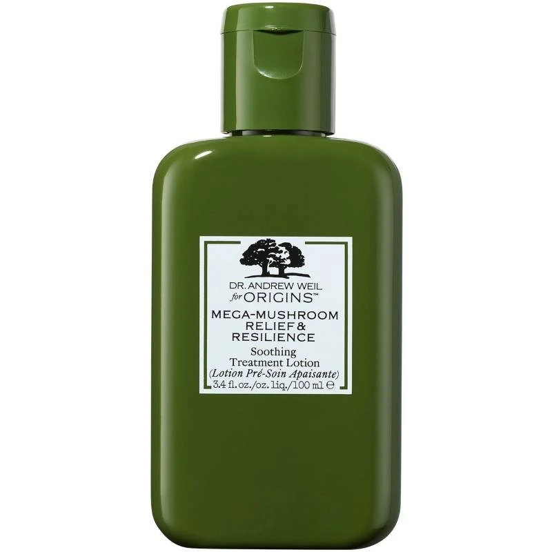 Origins Dr. Weil Mega-Mushroom™ Relief & Resilience Soothing Treatment Lotion er en forfriskende, vandig lotion/skintonic, som virker beroligende på stresset eller irriteret hud, og er derfor særlig velegnet til sensitiv hud.