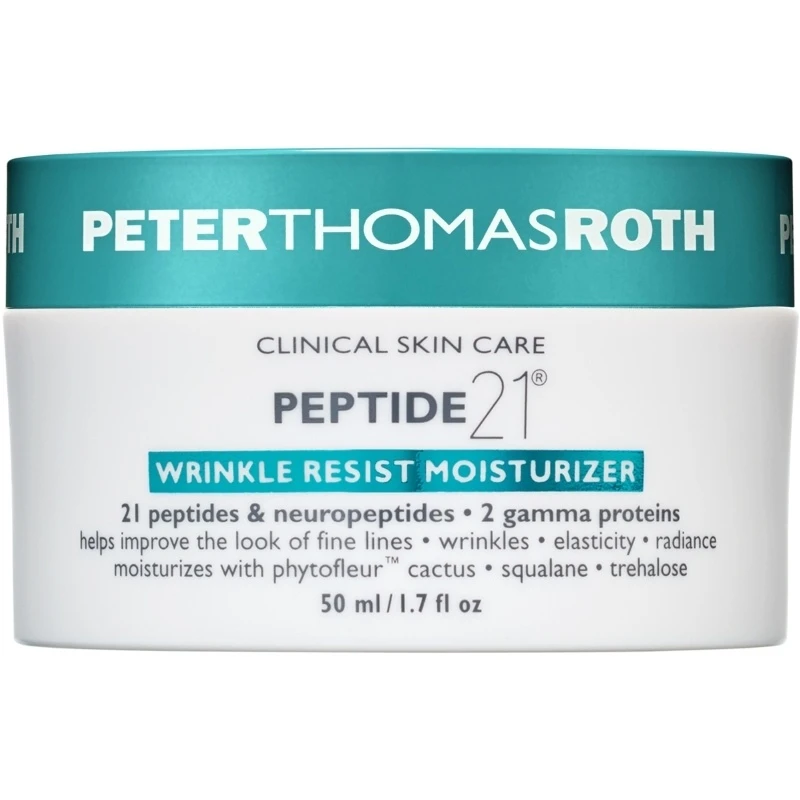 Peter Thomas Roth Peptide 21 Wrinkle Resist Moisturizer er en anti-ageing-fugtighedscreme, der der med sit indhold af 21 peptider, neuropeptider samt 2 gammaproteiner, effektivt minimerer synligheden af linjer og rynker både i ansigtet og på halsen.