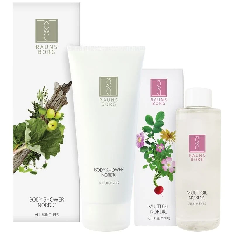 Raunsborg Fugtgivende Kropspleje Sæt er en sammensat pakke med 2 skønne produkter til kroppen. I denne pakke får du en lækker bodywash og en skøn og nærende olie, som er egnet til både ansigt, krop og hår. Så her kan du altså forkæle hel kroppen, og få en lækker wellness oplevelse i dit eget hjem.