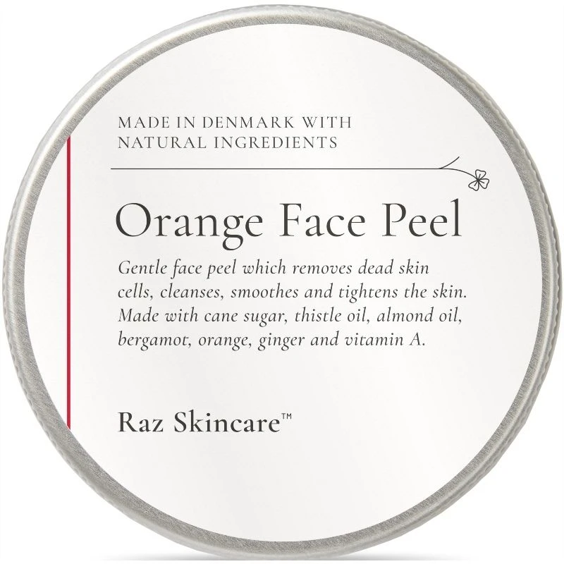 Raz Skincare Orange Face Peel er en meget mild ansigtsscrub, velegnet til alle hudtyper, men er særligt god til sensitiv eller tør hud.