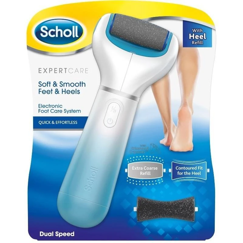 Scholl Electronic Foot Care System er en elektrisk fodfil, som effektivt fjerner hård hud og giver dig bløde og smukke fødder uden besvær. Apparatet er ergonomisk designet med et ‘soft touch’ håndtag, som ligger godt i hånden.