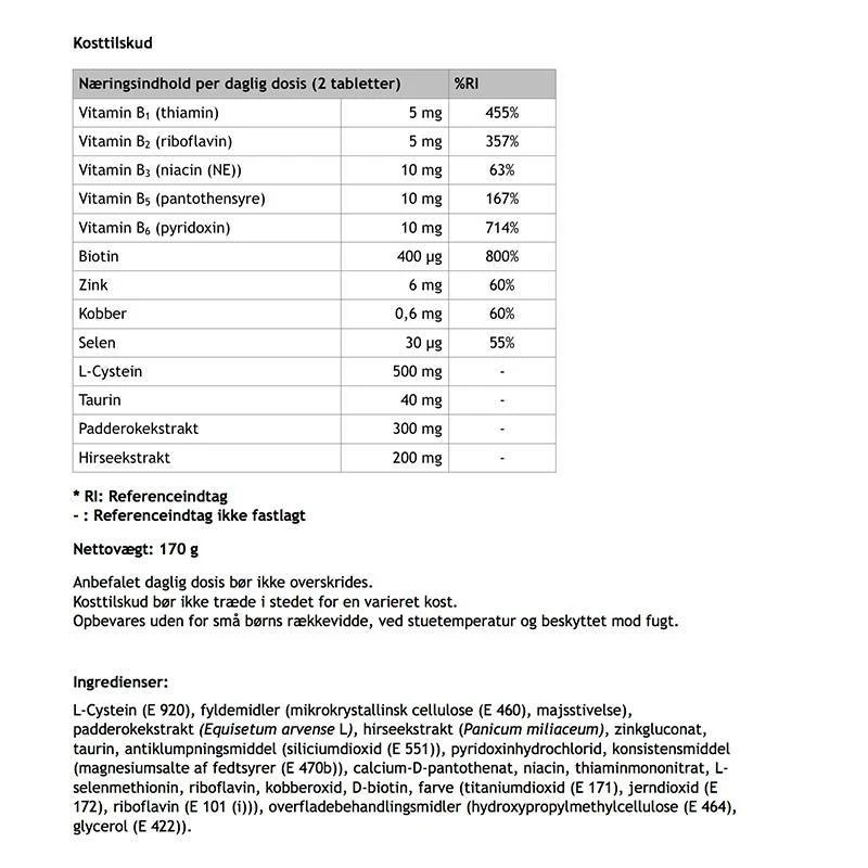 - Rig på zink og biotin der er bidrager til at vedligeholde et normalt hår