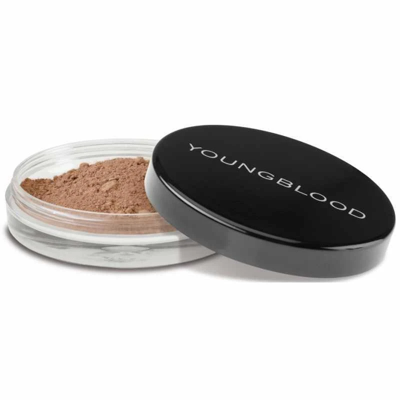 Youngblood Natural Loose Mineral Foundation – Sunglow er en ekstraordinær letvægt og brun mineral pudder, som fungerer som en concealer, foundation og pudder på samme tid. Denne oliefrie pudder er nem at påføre og din hud bliver smuk og naturlig at se på. Du vil slet ikke kunne mærke, at du har makeup på, da den er så let og silke-agtig. Denne pudder er desuden uden talkum, parabener og parfume.